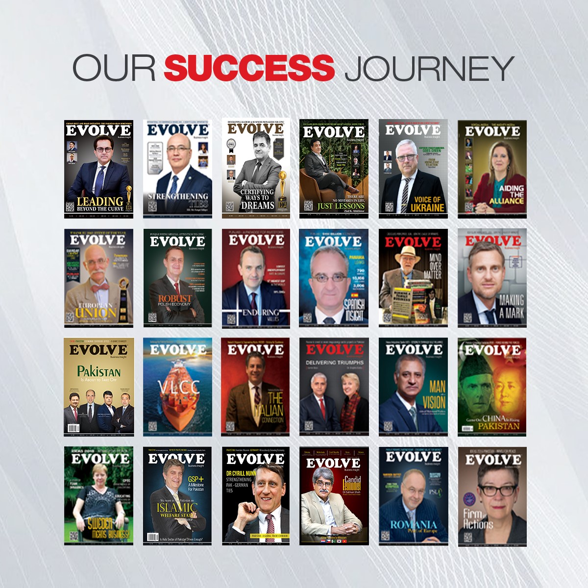 EVOLVE is an International Business Publication of CEO Clubs Worldwide. EVOLVE is a business and investment-focused publication through which we strive to bring worldwide business communities closer by sharing future business prospects, views, reviews, sector-based business news, updates of leading economies, profiles of leading businessmen and companies. Efforts are also being made to bridge the gulf between the business communities of different countries and to boost the information level of readers about the economy. Here it is important to mention, the publication is free of Political factors, concerned with the business sector only.